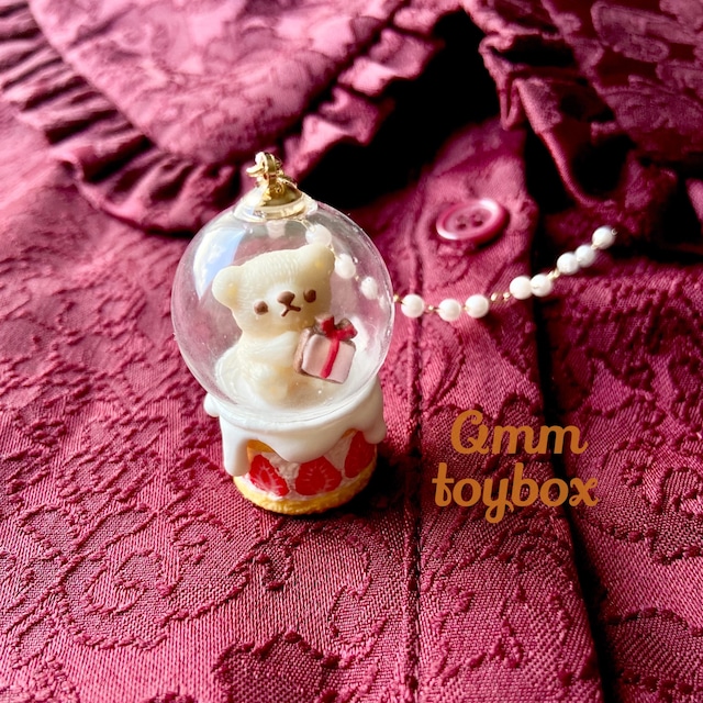 苺のケーキスノードーム【ネックレス50cm+アジャスター5cm・オーナメント】 苺のショートケーキがくまさんのステージのようなスノードームケーキ 秋冬にぴったりな作品に仕上げました ネックレスは小ぶりなパールが可愛いチェーンです オーナメントはクリスマスツリーの飾りや観賞用として利用できます ⚠︎注意事項 ドーム部分をレジンで製作しているので落としても割れづらいですが、繊細な作りをしているので取り扱いにはご注意ください ドームは1つずつ手作りをしているので気泡やムラがあります ご理解ご了承のうえご注文ください サイズ 縦×横 約4cm×2.5cm ネックレスの長さ:50cm+アジャスター5cm オーナメント:リボン+パールの長さ約9cm ▼▽▼▽▼▽▼▽▼▽▼▽▼▽▼▽▼▽▼▽▼▽▼▽▼ 心を込めて作っておりますが手作業のため、個体差・埃・閲覧媒体や光の当たり具合による画像との色調変化などがある場合がございます。 作品はニスを塗布しておりますが完全耐水ではありませんので水に濡れないようご注意ください。 作品は手作りで繊細なため、落としたり引っ掛けたり強い力を加えると破損する場合があります。優しいお取り扱いをお願いします。 保管の際は日光の当たらない涼しい場所での保管をお願い致します。 ▼▽▼▽▼▽▼▽▼▽▼▽▼▽▼▽▼▽▼▽▼▽▼▽▼ 【転売・買い付け・仕入れ行為禁止】 【個数制限のお願い】 ※同一のお客様(ご住所)に対しての個数制限です。分けてご注文いただいた場合も合わせて個数計算します。 "同じ住所で名義を変更"している場合も含みます。 転売目的と思われる方、個数制限オーバーの方はキャンセルをさせていただきますのでご了承ください。 Qmm toybox