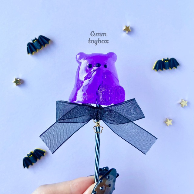 ハロウィンこわがりくまさんキャンディ【ネックレス・キーホルダー】 ハロウィンの夜におばけたちにバレないようシーツをかぶって震えるくまさんのブドウ味のキャンディ 観賞用(パーツなし)、ネックレス(50cm+アジャスター5cm)またはキーホルダーをお選びください。 リボンの固定用に付けたバンドが表から見える場合がございます。ご了承ください。 棒付きのため、ご使用の際は刺したり引っ掛けたりしないよう気をつけてご着用ください。 サイズ 縦×横 棒・リボン込み約10cm×7cm キャンディ部分のみ約3cm×4cm ネックレスの長さ:50cm+アジャスター5cm ▼▽▼▽▼▽▼▽▼▽▼▽▼▽▼▽▼▽▼▽▼▽▼▽▼ 心を込めて作っておりますが手作業のため、個体差・埃・閲覧媒体や光の当たり具合による画像との色調変化などがある場合がございます。 作品はニスを塗布しておりますが完全耐水ではありませんので水に濡れないようご注意ください。 作品は手作りで繊細なため、落としたり引っ掛けたり強い力を加えると破損する場合があります。優しいお取り扱いをお願いします。 保管の際は日光の当たらない涼しい場所での保管をお願い致します。 ▼▽▼▽▼▽▼▽▼▽▼▽▼▽▼▽▼▽▼▽▼▽▼▽▼ 【転売・買い付け・仕入れ行為禁止】 【個数制限のお願い】 ※同一のお客様(ご住所)に対しての個数制限です。分けてご注文いただいた場合も合わせて個数計算します。 "同じ住所で名義を変更"している場合も含みます。 転売目的と思われる方、個数制限オーバーの方はキャンセルをさせていただきますのでご了承ください。 Qmm toybox