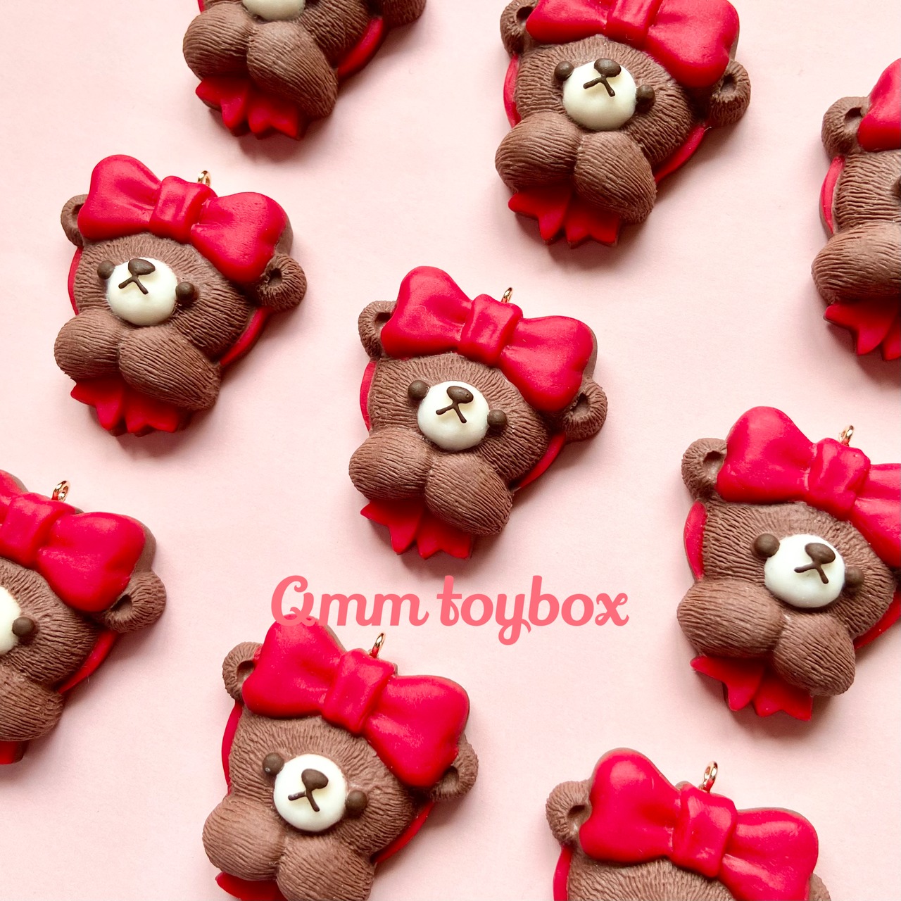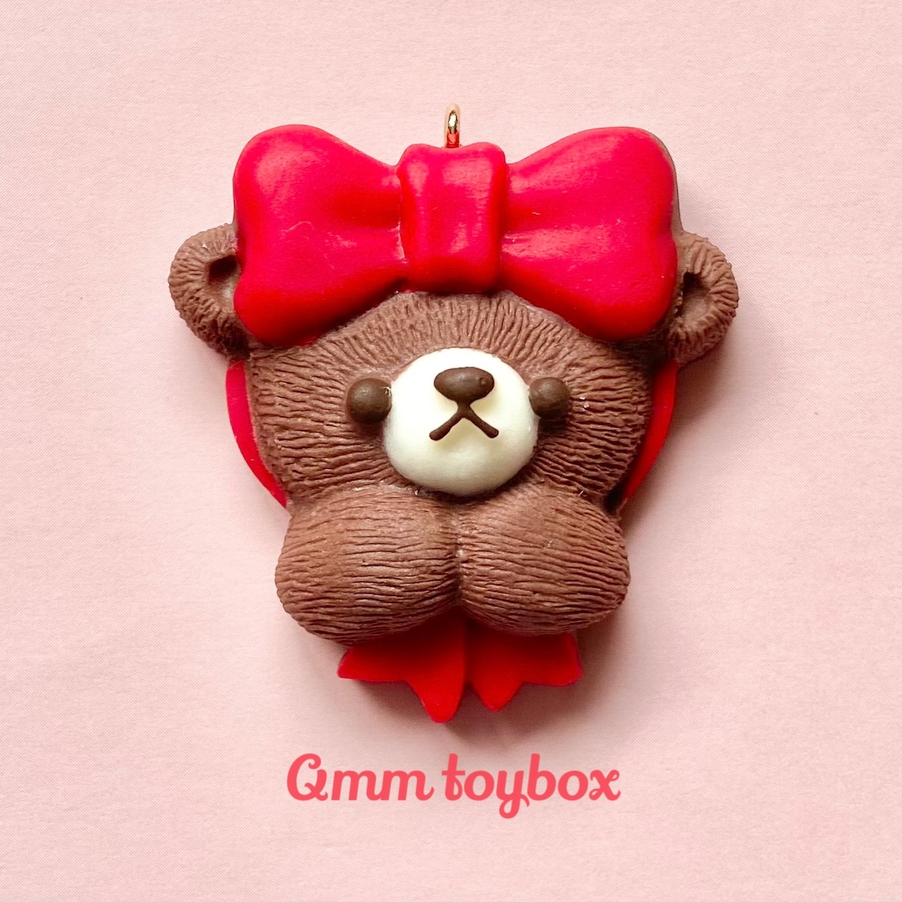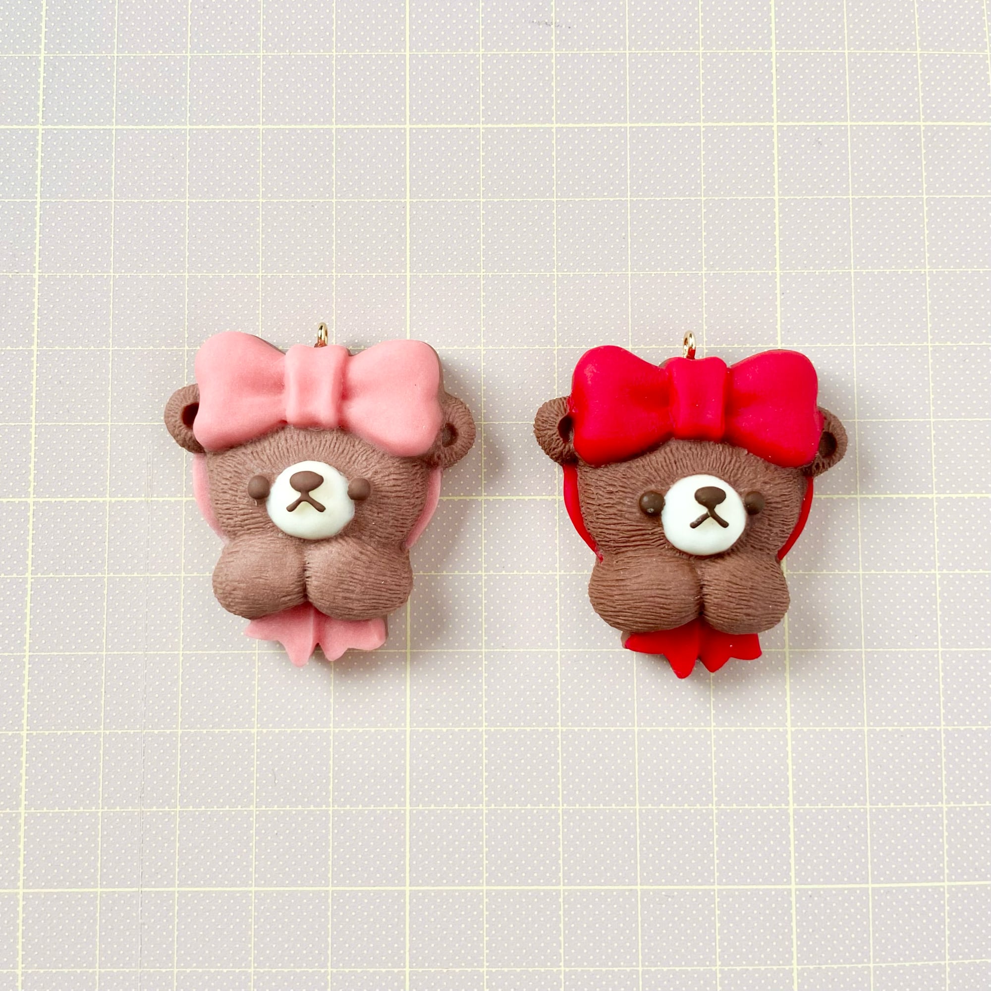 頭にリボンをつけておめかしの準備をするくまさんチョコレート