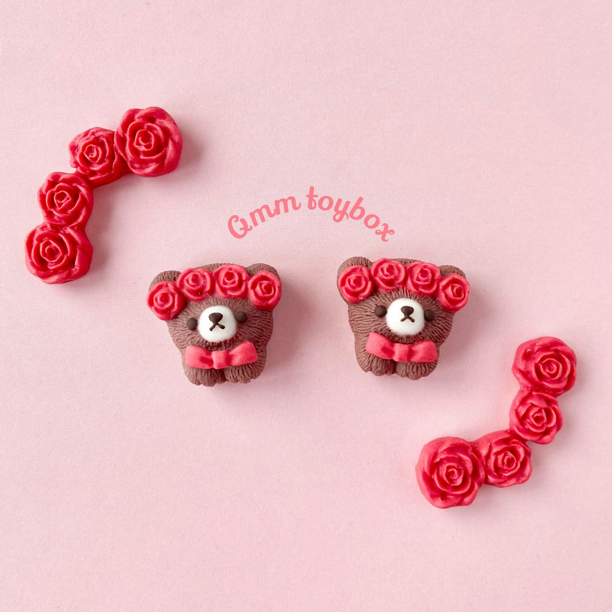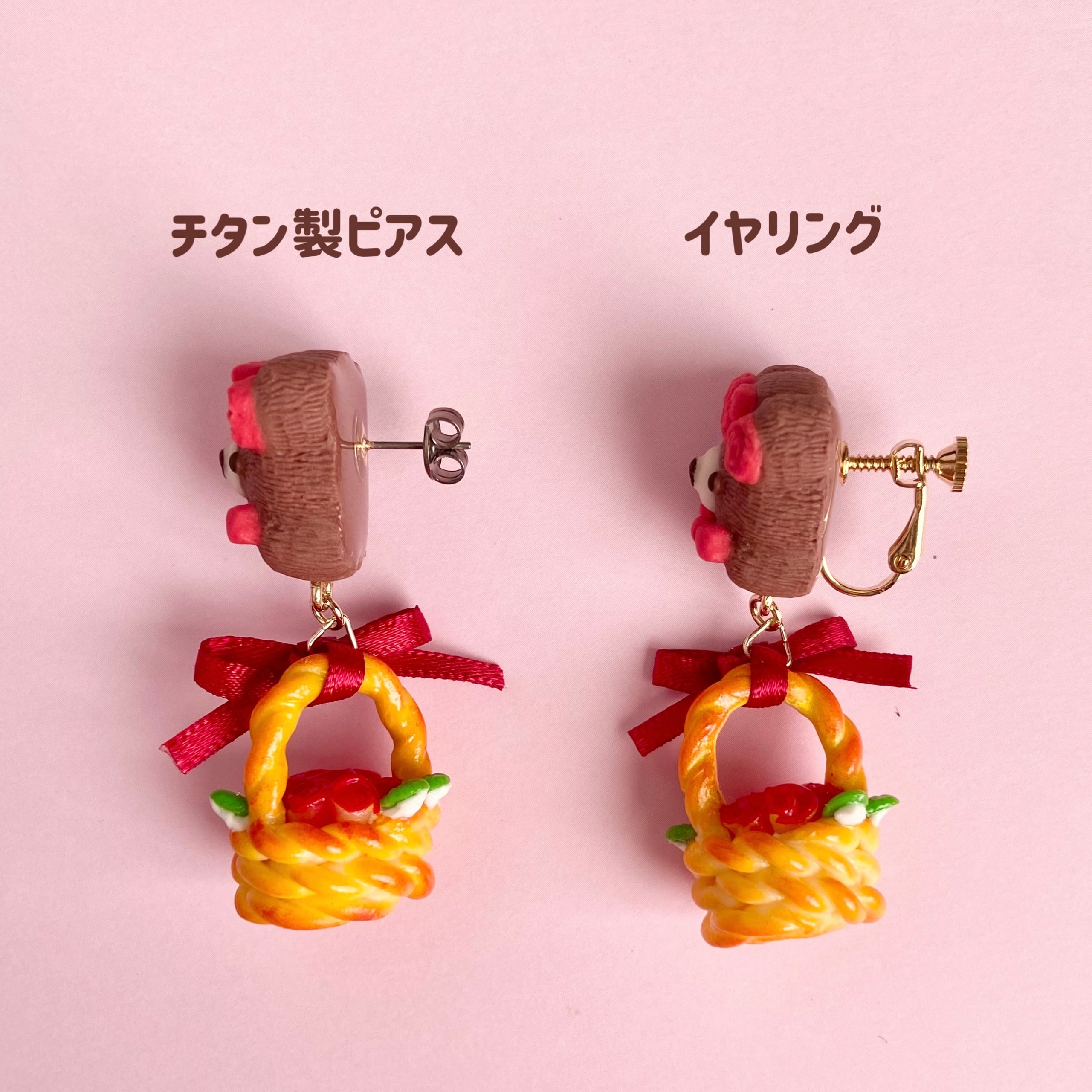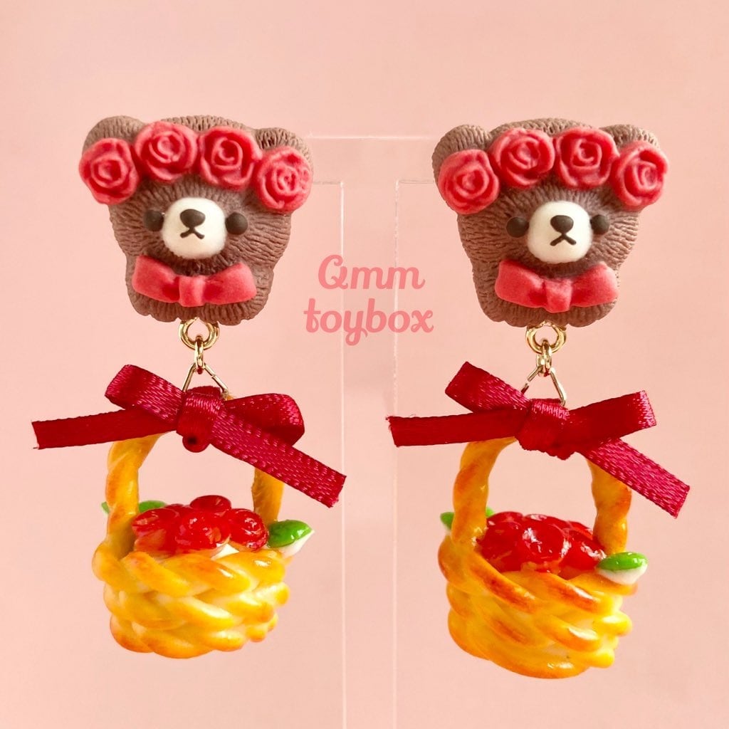 おでかけくまさん花束パイ【ピアス・イヤリング】