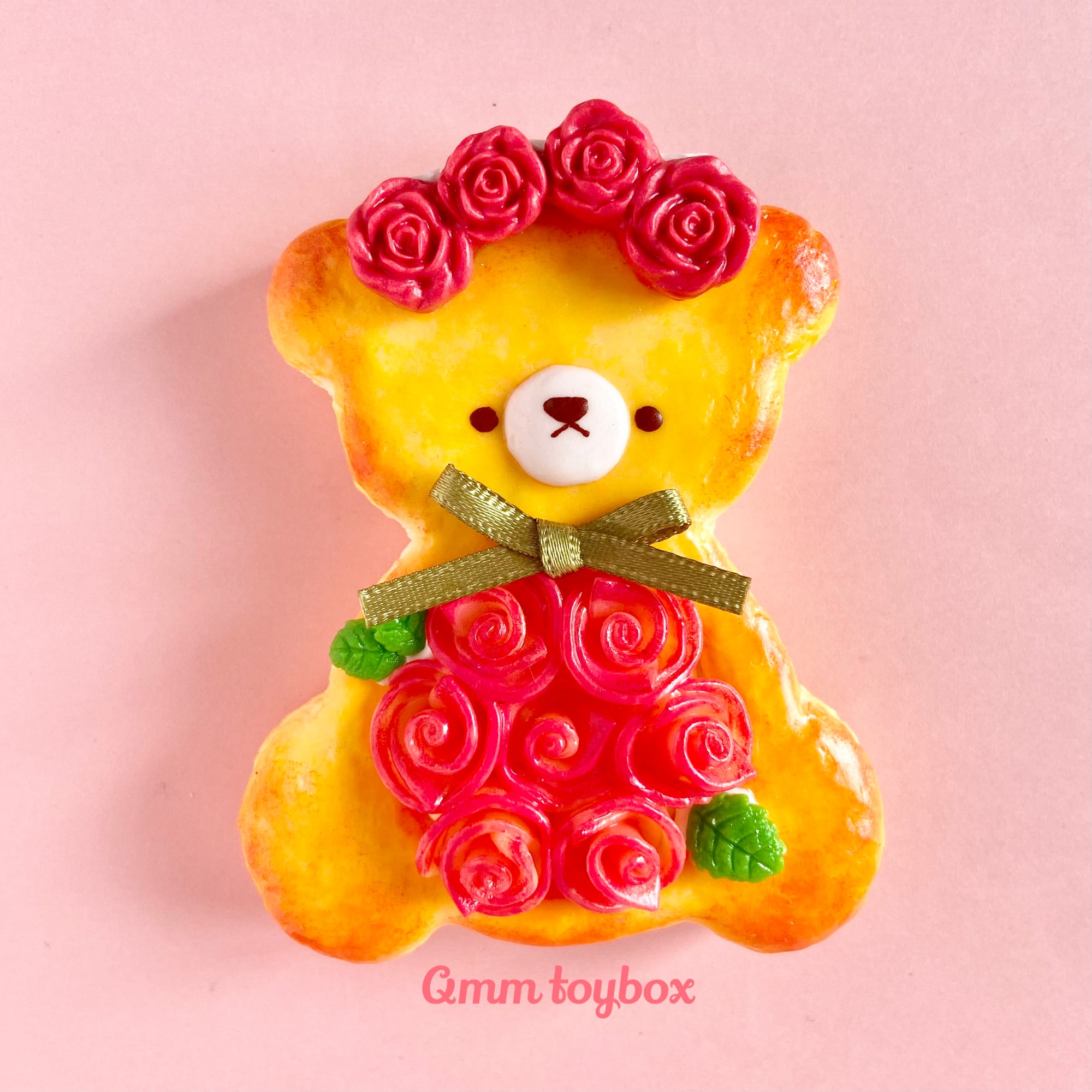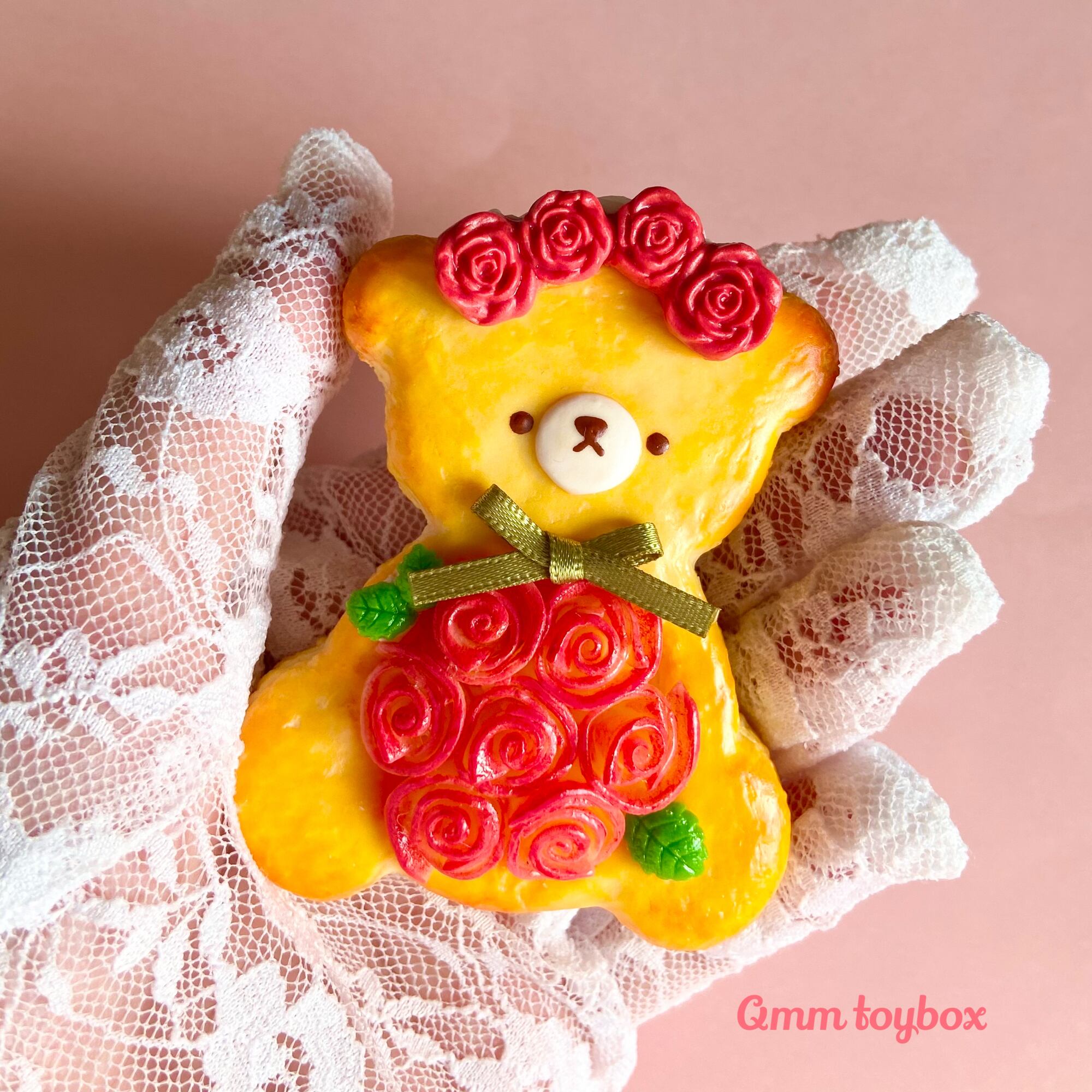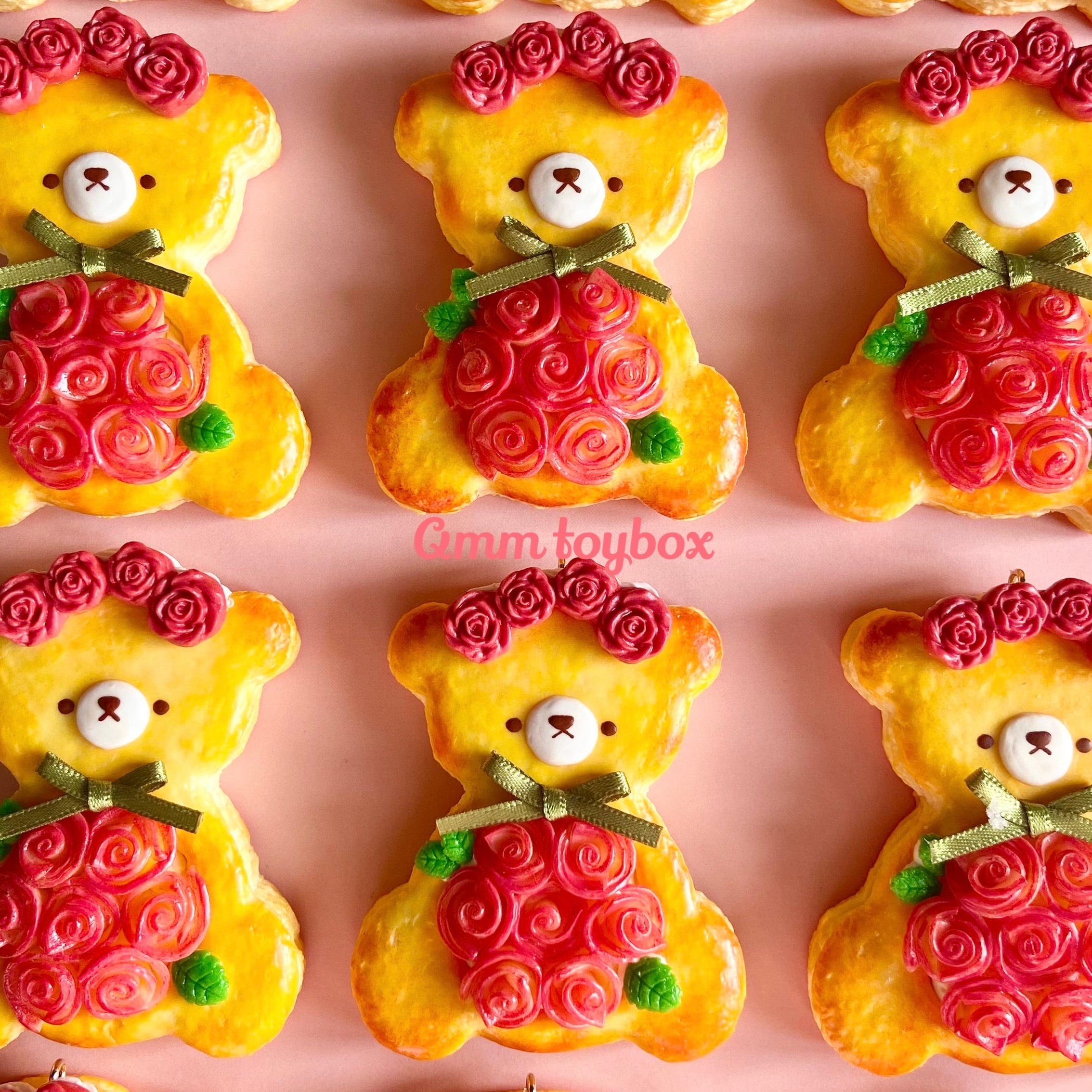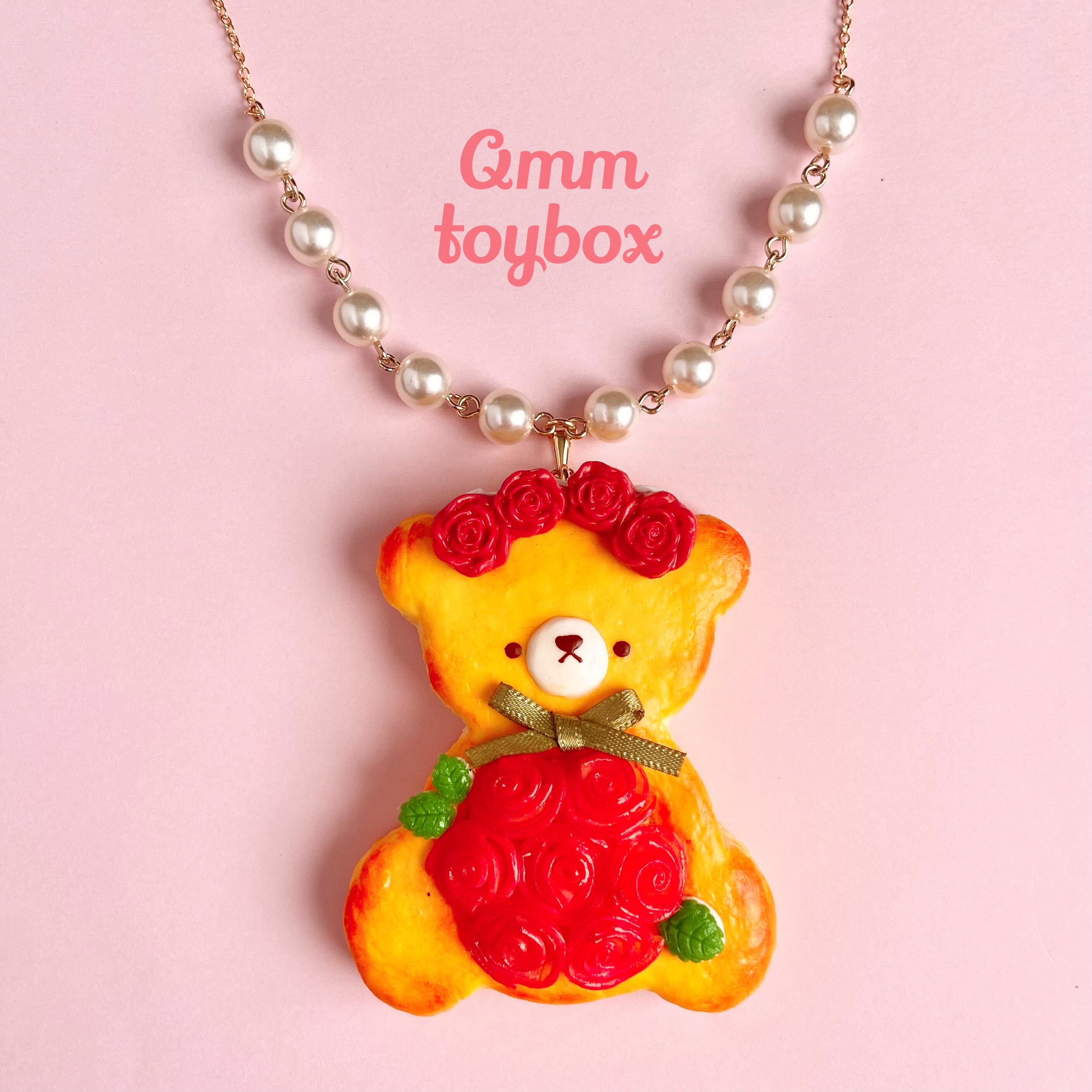 薔薇のようにカットしたたっぷりの林檎を花束に見立ててくまさんが抱えている、甘さたっぷりのネックレスです