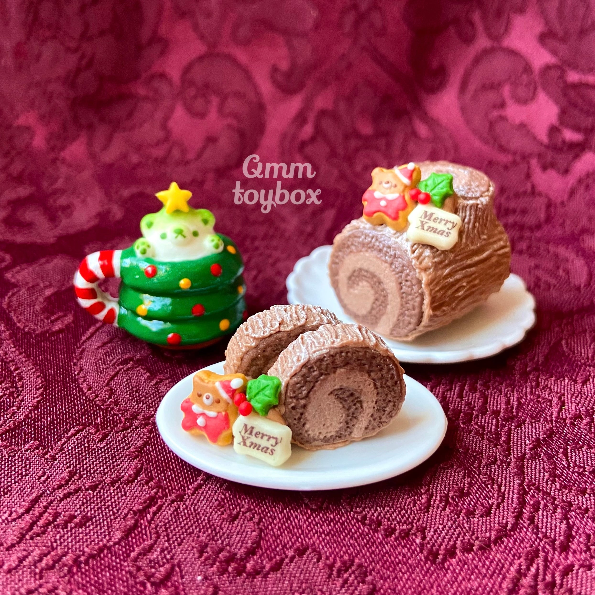 10cm前後のドールやぬいとクリスマスパーティーを楽しめるフェイクスイーツ作品です