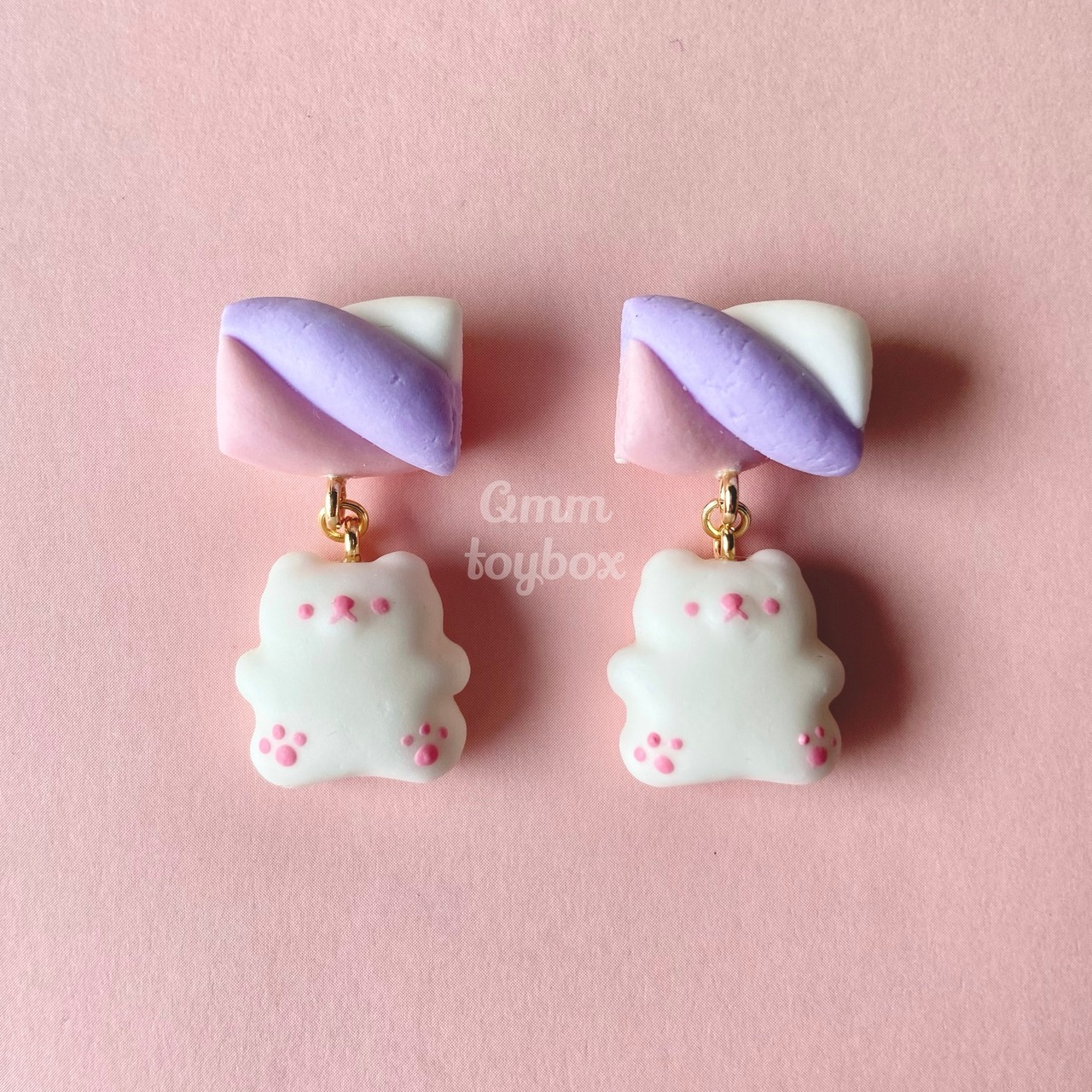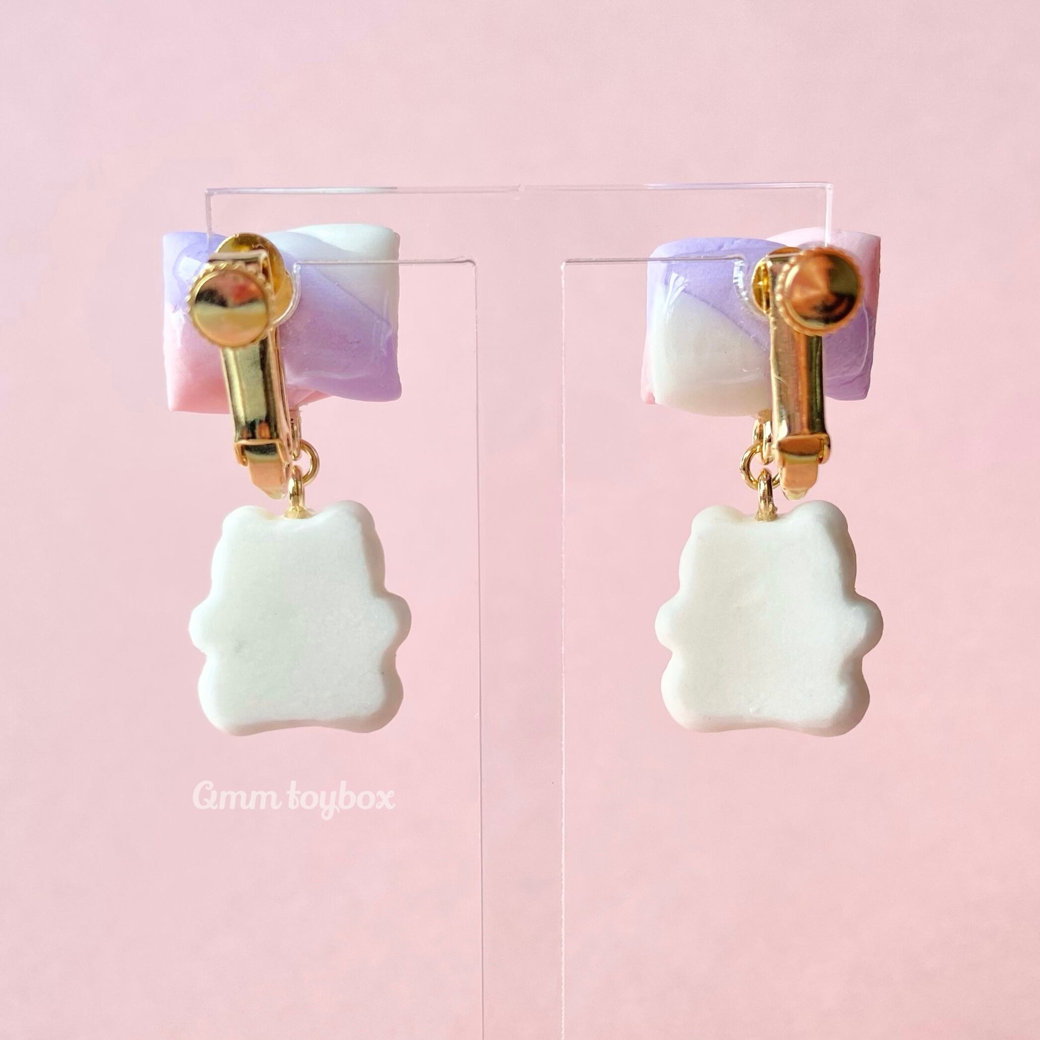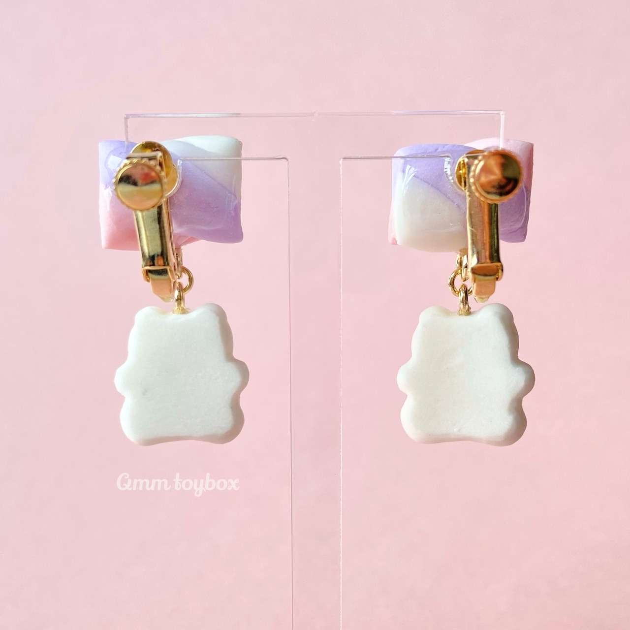 ミニマシュマロくまさん・ピンク×パープル【ピアス・イヤリング】