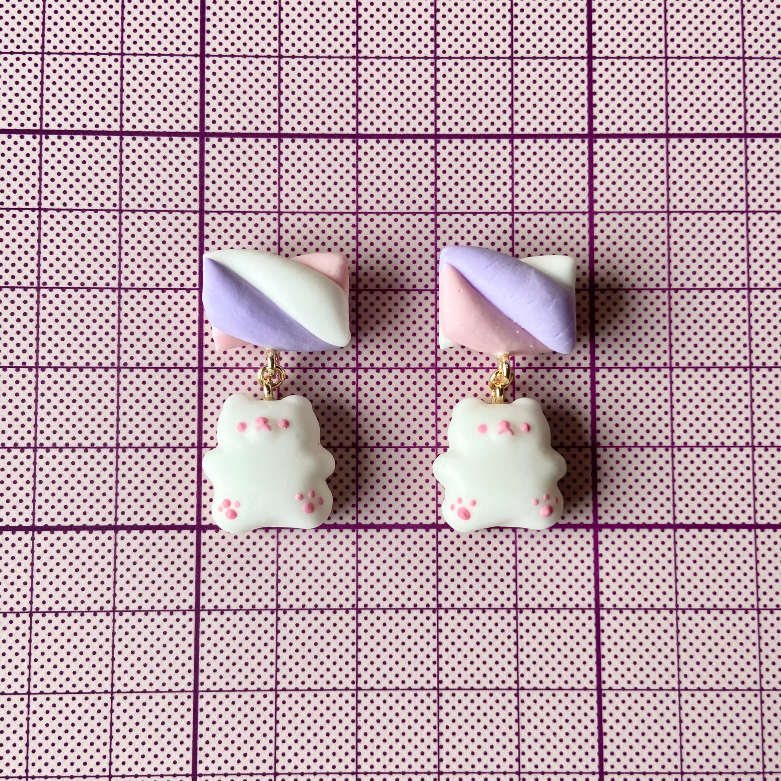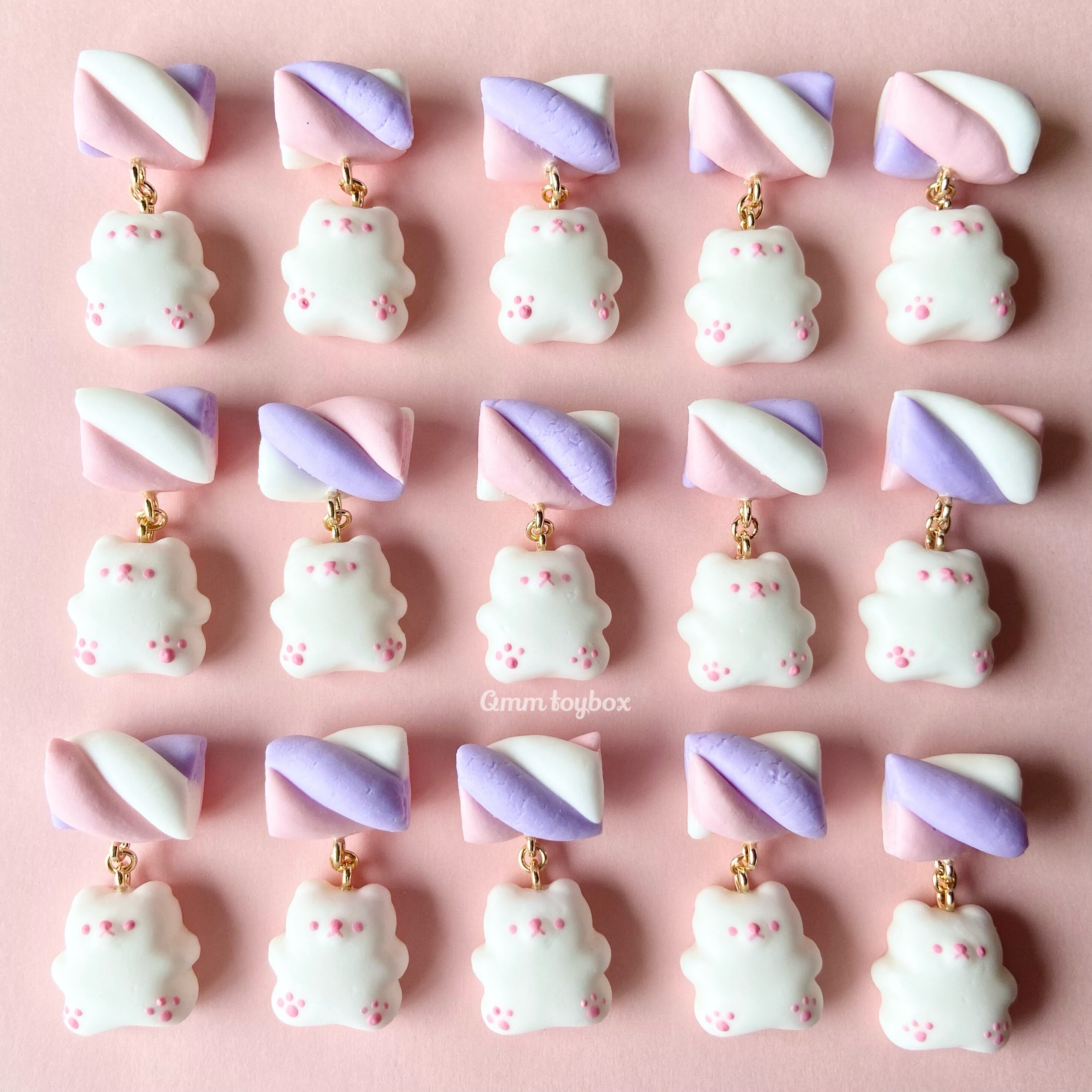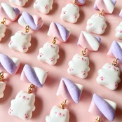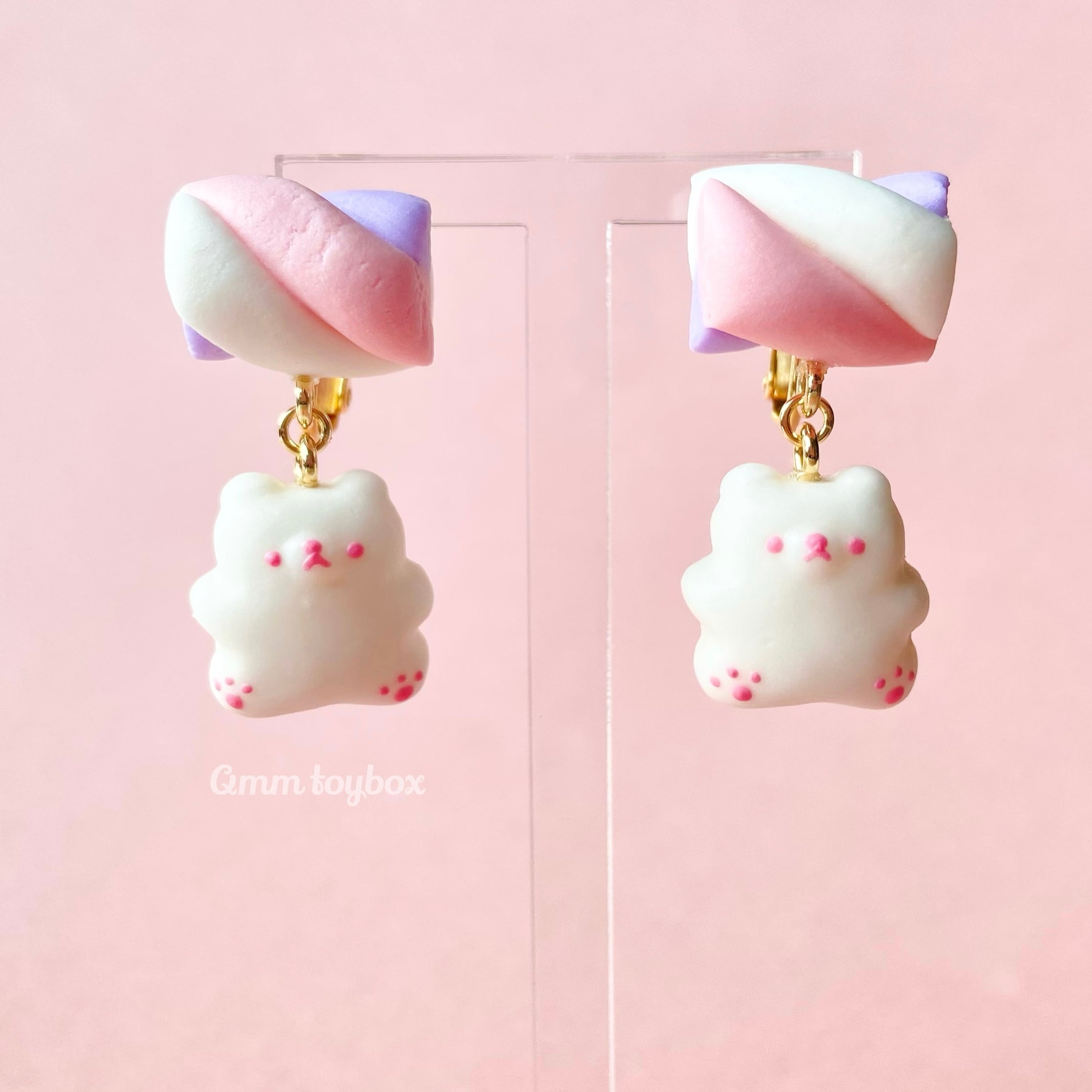 小さなパステルカラーのマシュマロとくまさんのマシュマロがセットになった作品です