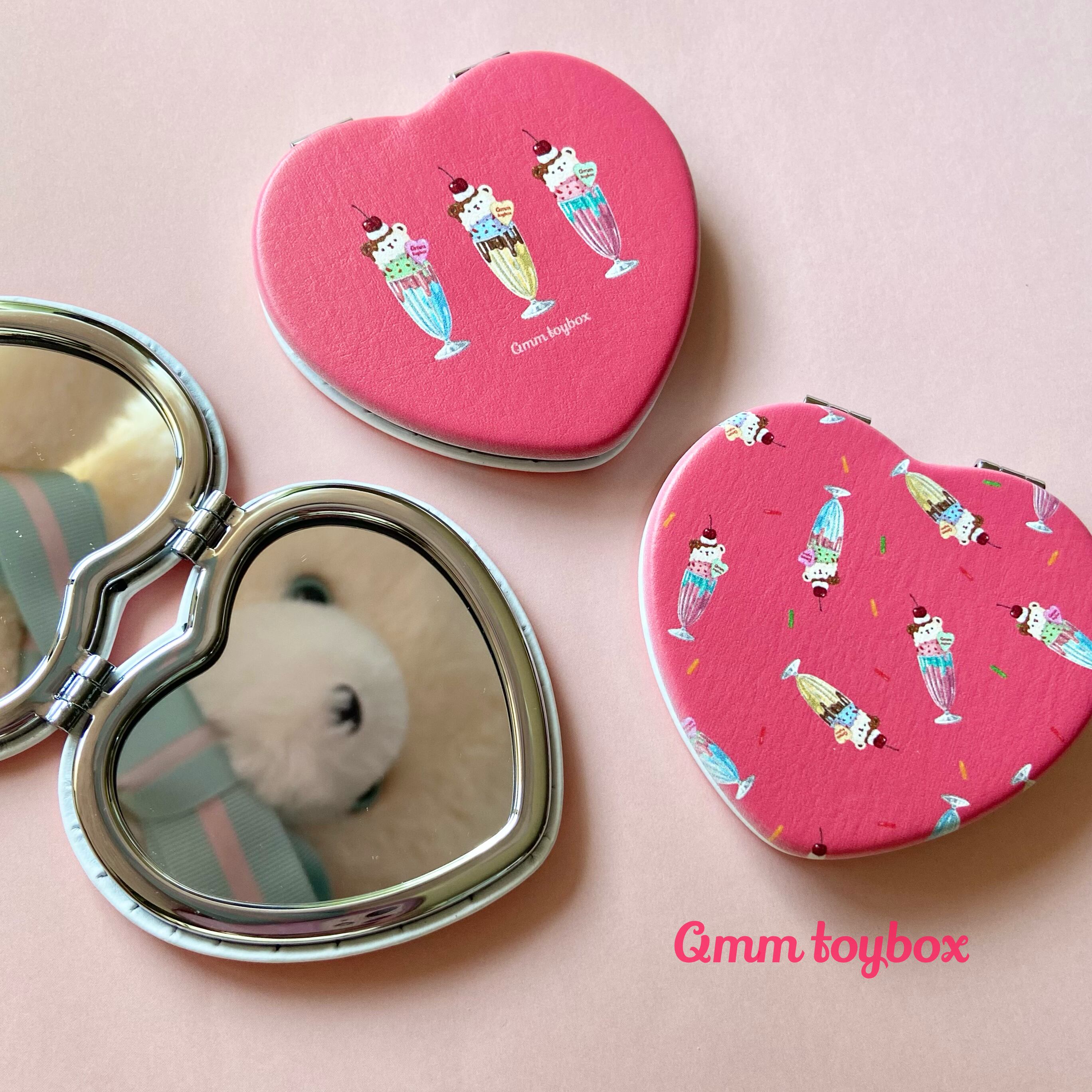 舌だしベアフロートのイラストが入った持ち運びに便利なコンパクトミラーです