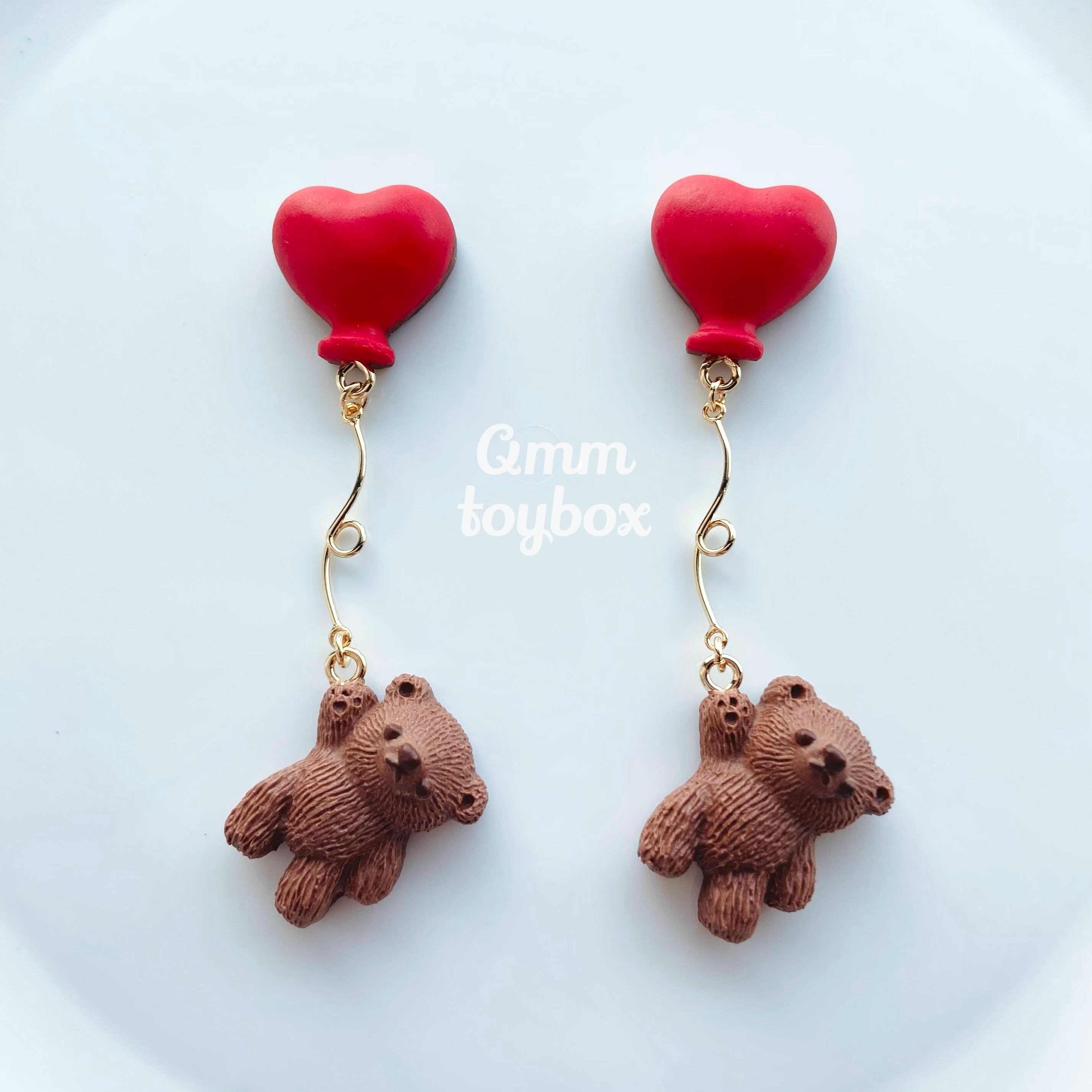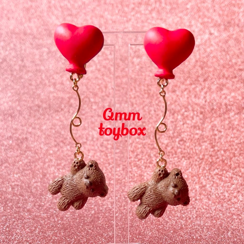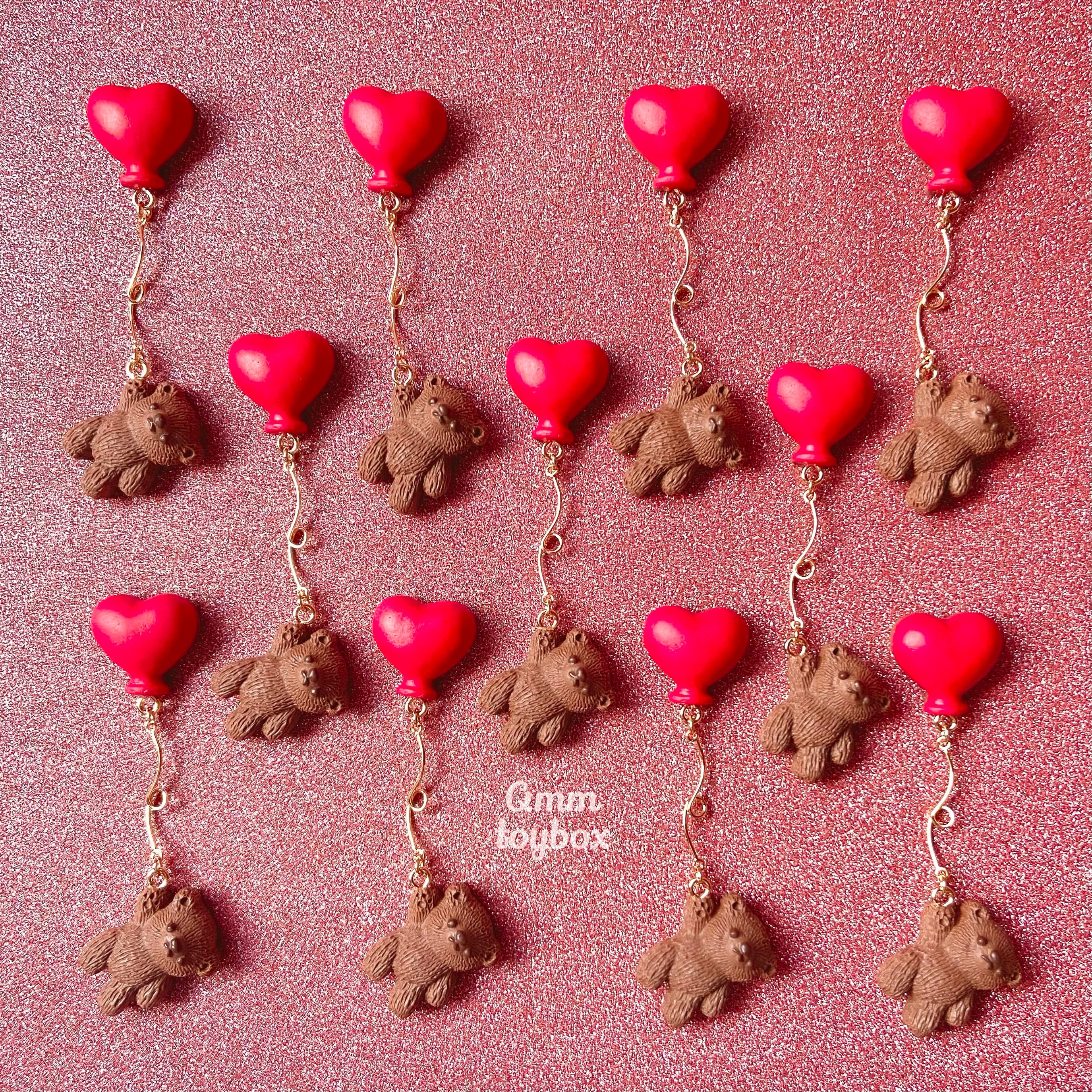 くまさんとハート風船チョコレート【ピアス・イヤリング】