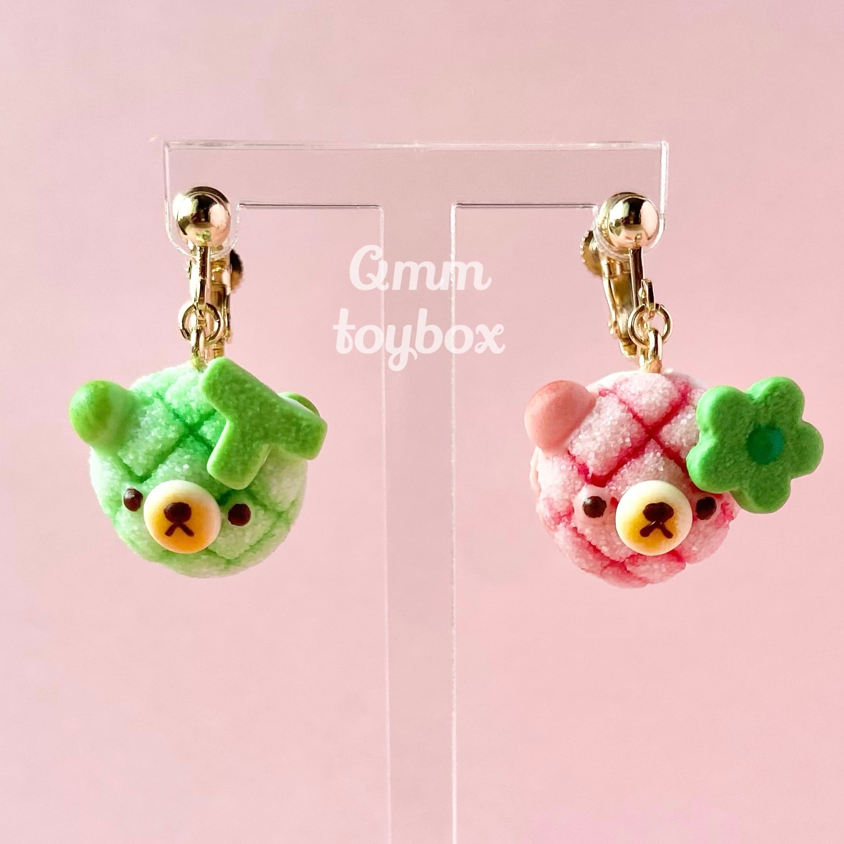 メロン型くまさんメロンパン【片耳ピアス・片耳イヤリング】